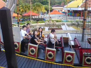 4rd outing is Escape i guess.. eng din join us.. he went to "work" as he said..but too bad we din saw him at escape..WHAHHA.. welll.. played a lot of times of pirate ship.which makes me go WOW WOW WOW..scary pls!! but i manage to tahan until evening after i vomit..WELL DONE SHANG!! i think i had lesser fear for pirate ship ride^^ although i cant stop shouting..haha i sacrifice to take this pic by nt taking the ride=xX